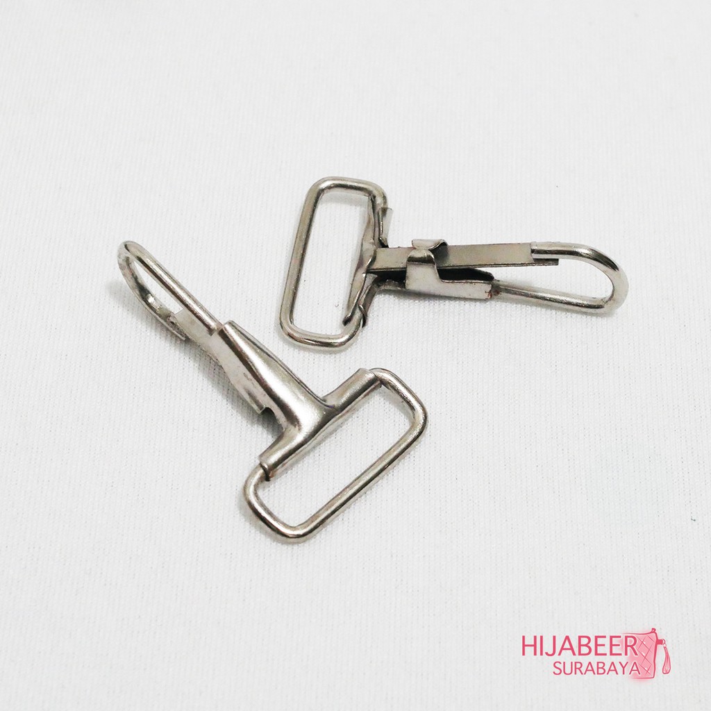 Pengait atau biasa juga disebut cantelan atupun cantolan ini biasa digunakan untuk menjadi kait penyambung tali tas atau hanya digunakan untuk gantungan aksesoris tas dan bisa juga digunakan untuk gantungan kunci. Kait ini terbuat dari nikel dan memiliki banyak fungsi dalam kerajingan tangan rumahan maupun produksi besar.Kode barang : CP001-4Diameter lubang atas : 2cmPanjang : 4,5 cmWarna : NikelKualitas terbaik!Harga yang tertera untuk