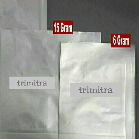 barang dengan minimal order, chat sebelum order ya...Kemasan SACHETbahan FULL FOIL PREMIUM SILVER DEPAN BELAKANGTANPA KLIPUntuk mempercantik bisa dilaminasi atau di tempel dengan stiker merk Anda.Sangat cocok untuk kemasan :Minuman serbukSambalSnackuntuk kemasan product 15 gram( asumsi diisi gula pasir )8x9 cmBahan terbuat dari kualitas no.1bukan yang murah yang gampang sobekTebal FULL FOIL PREMIUM SILVER 50 mikronBahan Food gradeSangat cocok untuk kemasan product dan UKMMinimal pembelian 500 pcs dan kelipatannyaUkuran yang tersedia silakan cek di etalase kami.( kapasitas 100 gram ) 15x20cm( kapasitas 50 gram ) 12x15cm( kapasitas 35 gram ) 12x12cm( kapasitas 25 gram ) 8x12cm( kapasitas 15 gram ) 8x9cm( kapasitas 6 gram ) 8x6cmhappy shoppi