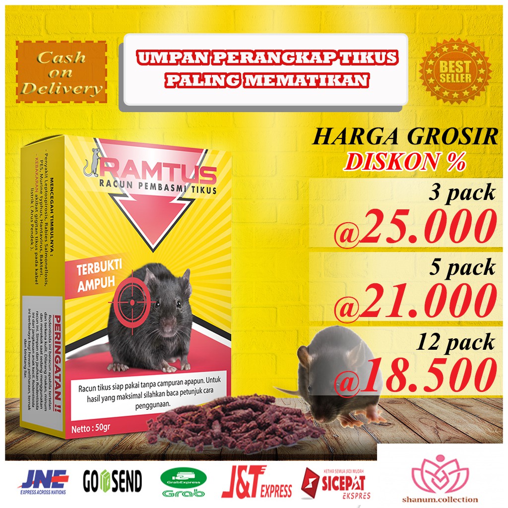 Racun tikus perangkap Tikus Paling ampuh tidak bau mati kering 50 Gram==================================♂ BAYAR DITEMPAT (COD) Via Kurir J&T PASTI READY STOCK Langsung order gan GOSEND & GRAB langsung Cuuuuus✈ J&T dan Sicepat kirim hari yang sama FREE / SUBSIDI ONGKIR By Shopee :=================================--> Pembayaran dilakukan dengan Shoppe Pay 1 Pack Ramtus = 50 Gram HARGA NORMAL ➡ Rp. 27.000/Pack HARGA HEMAT=============== 4 Pack = Rp. 100.000 (Hemat Rp. 8.000) 8 Pack = Rp. 168.000 (Hemat Rp. 48.000) 12 Pack = Rp. 222.000 (Hemat Rp. 102.000) Perlu Anda Ketahui !!!==================== NORMALnya semua TIKUS itu MATI KERING(hanya tikus kejebur dalam air yang mati basah ) NORMALnya 2-3 hari TIKUS MATI itu TIDAK BAU(TIDAK BAU itu maksudnya TIKUS MATI hanya DIAWETKAN SEMENTARA saja, sekitar +/- 3-7 hari saja, setelah itu pasti akan BAU juga jika tidak segera ditangani / dikubur) MINDSET PENGENDALIAN TIKUS dengan BENAR ‼========================================✅ Dibasmi TUNTAS bukan sekedar DIUSIR saja !!!✅ Mematikan KOLONI TIKUS bukan hanya mati di tempat✅ Mematikan KOLONI TIKUS bukan hanya 1 - 2 Ekor saja✅ TERIDENTIFIKASI LOKASI MATINYA lebih utama dari pada tikus mati ditempat, mati ditempat atau tidak berbau Ingin Info Lebih Lanjut ??==================== Silahkan Chatt toko kami (free)♂ LIHAT TIKUS ---> INGAT RAMTUS Racun tikus perangkap Tikus Paling ampuh tidak bau mati kering 50 Gram Pasti dimakan TIKUS- Aroma Khas yang merangsang Penciuman Tikus- Tidak Terdeteksi sebagai Racun Oleh Tikus Bekerja dengan EFEKTIF- Siap Saji Tanpa perlu campuran apapun- Sebagai bahan pengerat- Memancing Koloni Tikus Keluar dari sarangnya Untuk Semua Jenis Tikus & Mencit Relatif Aman- Dosis Khusus untuk Mematikan Tikus- Antidot yang mudah di dadapat jika terpapar pada manusia- Note: detail silahkan Chatt toko kamiCARA PENGGUNAAN RAMTUS :============================ Ada pada kemasan Kami Informasikan Via Chatt LANGSUNG ORDER ya gan =========================== CHAT toko kami Jika anda :======================== ada pertanyaan☝ butuh Pendampingan selama penggunaan❤ Welcome : Reseller / Dropshipper (sangat terbatas)- Syarat Ketentuan Berlaku- ada reward selling contest- Bisa AWB / Resi Otomatis ♂ LIHAT TIKUS ---> INGAT RAMTUSRacun tikus perangkap Tikus Paling ampuh tidak bau mati kering 50 Gram#tikus#ramtus#racuntikus#racuntikuspalingefektif#pengusirtikus#pengusirtikuspalingef