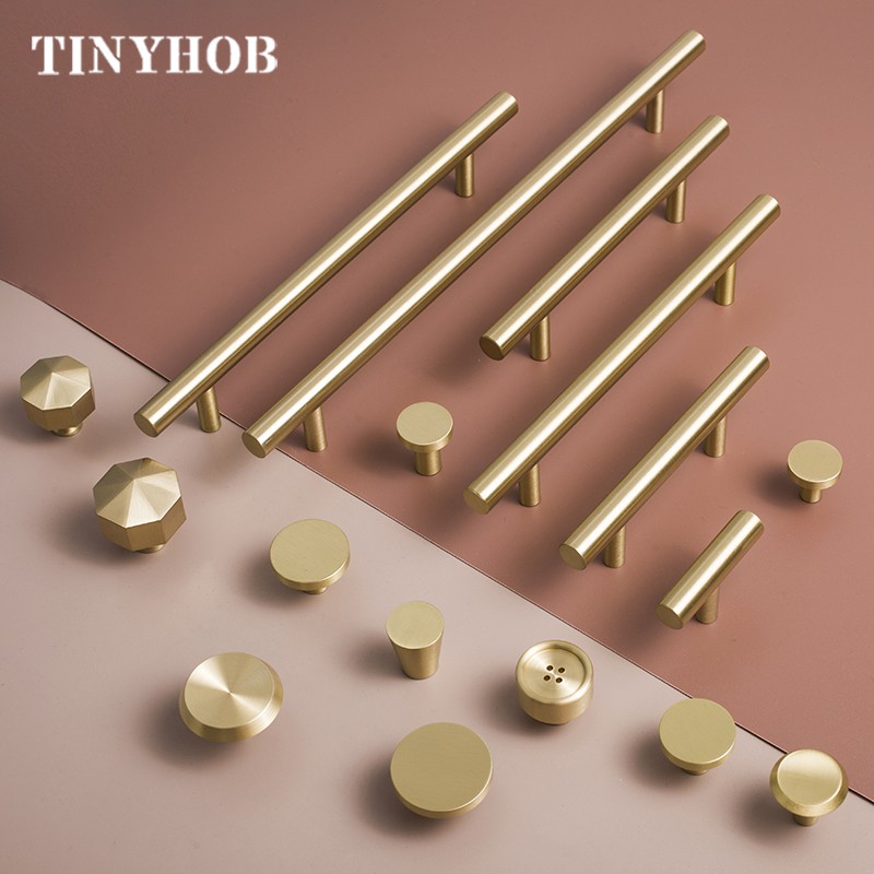 Name: T Bar Handle Knobs Bahan Kuningan Warna Emas Solid Gaya Eropa Untuk Furniture Lemari Dapur