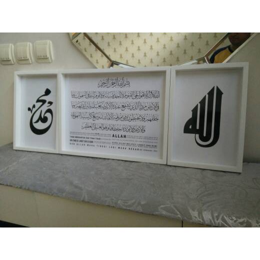 Name: Hiasan Dinding Kaligrafi Set Ayat Kursi Dan Allah Muhammad Hitam Putih Canvas Uk Besar