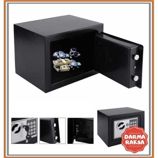 Kotak penyimpanan ini tak ubahnya seperti brankas defosit box biasa. Ada pintu khusus yang dapat dibuka. Di dalamnya dapat digunakan untuk menyimpan benda-benda berharga kamu seperti emas batangan, jam tangan, hingga perhiasan. Terdapat dua cara untuk membuka pintu rabnkas ini. Dengan password elektrik dan satunya cara konvesional menggunakan kunci.Spesifikasi :· Battery Type : 4 x AA· Material : Stainless Steel· Dimension : 23 cm x 17 cm x 17 cm· Capacity : 4.6 LiterPackaging : · 1 x Brankas Elektrik· 4 x Baterai· 1 x Set Baut· 2 x Kunci· 1 x Manual· 1 x Dus/Plastik Kemasan· 1 x Bubble Wrap<< Garansi : 1 Minggu >>Catatan : · Harap untuk membaca deskripsi produk sebelum belanja di Darmaraksa· Reseller We
