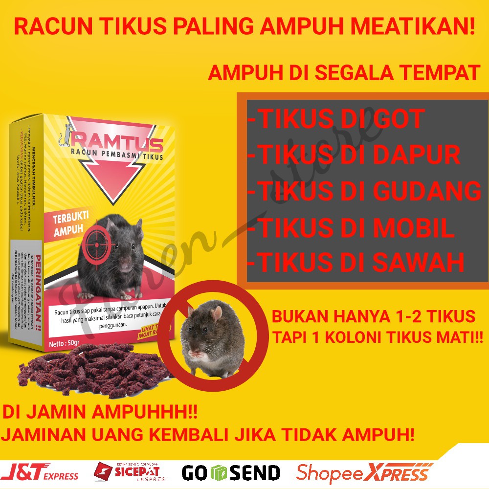 Racun Pembasmi Dan Pengusir Tikus Mobil Paling Ampuh Cikarang" bukan hanya di mobil saja yah ka, tikus di segala tempat bisa mati karena ramtus. bahkan tikus di sawah yg biasanya makan hasil panen bisa mati karena ramtus. terbukti ampuh 10000%"♂ BAYAR DITEMPAT Via Kurir SICEPAT PASTI READY STOCK Langsung order gan GOSEND & GRAB langsung Cuuuuus✈ J&T dan Sicepat kirim hari yang sama 1 pack = 50 gram⚖ 1 Kg = 16 Pack MINDSET MEMBASMI TIKUS ‼===============================✅ DIBASMI TUNTAS bukan hanya diusir saja !!!✅ MEMBASMI KOLONI TIKUS bukan hanya mati di tempat✅ MEMBASMI KOLONI TIKUS bukan mematikan 1 - 2 Ekor saja✅ TERIDENTIFIKASI LOKASI MATINYA bukan mati tidak berbau♂ LIHAT TIKUS ---> INGAT RAMTUSRacun Pembasmi Dan Pengusir Tikus Mobil Paling Ampuh Cikarang Pasti dimakan TIKUS- Aroma Khas yang merangsang Penciuman Tikus- Tidak Terdeteksi sebagai Racun Oleh Tikus Bekerja dengan EFEKTIF- Siap Saji Tanpa perlu campuran apapun- Sebagai bahan pengerat- Memancing Koloni Tikus Keluar dari sarangnya Untuk Semua Jenis Tikus & Mencit Relatif Aman- Dosis Khusus untuk Mematikan Tikus- Antidot yang mudah di dadapat jika terpapar pada manusia- Note: detail silahkan Chatt toko kamiCARA PENGGUNAAN RAMTUS :============================ Ada pada kemasan Kami Informasikan Via Chatt LANGSUNG ORDER ya gan ======================== CHAT toko kami Jika anda :======================== ada pertanyaan☝ butuh Pendampingan selama penggunaan❤ Welcome : Reseller / Dropsipper♂ LIHAT TIKUS ---> INGAT RAMTUS Racun Pembasmi Dan Pengusir Tikus Mobil Paling Ampuh Cik