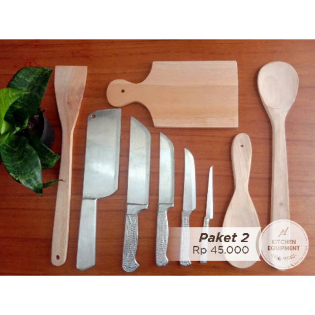 Name: Pisau Dapur Paket 2 : (isi 9) 5 Pisau Stainless / 2 Sutil / 1talenan / 1 Centong Kayu